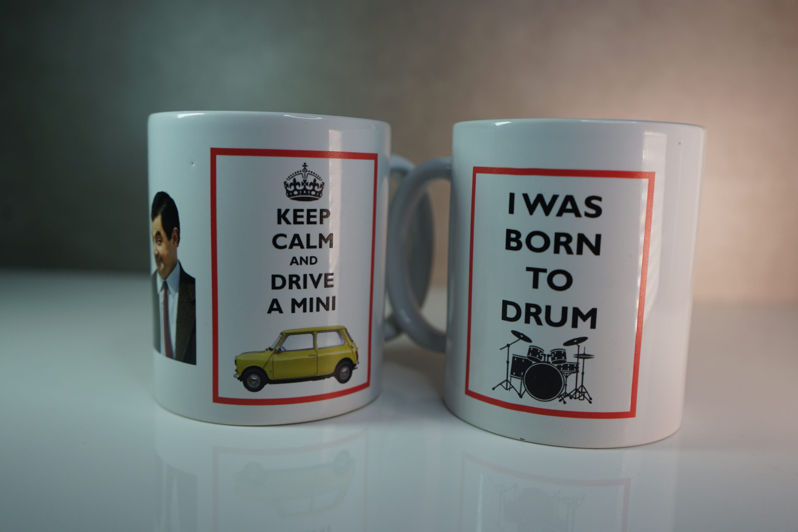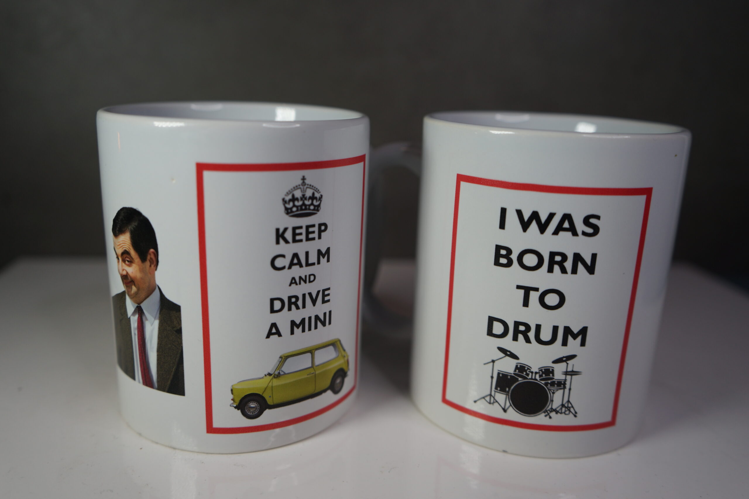 The mugs measure 8.5cm diameter, by 10cm tall, with a base colour of white. After that, the limit is your imagination. Design it with text, or a photo, or a drawing or clip art.