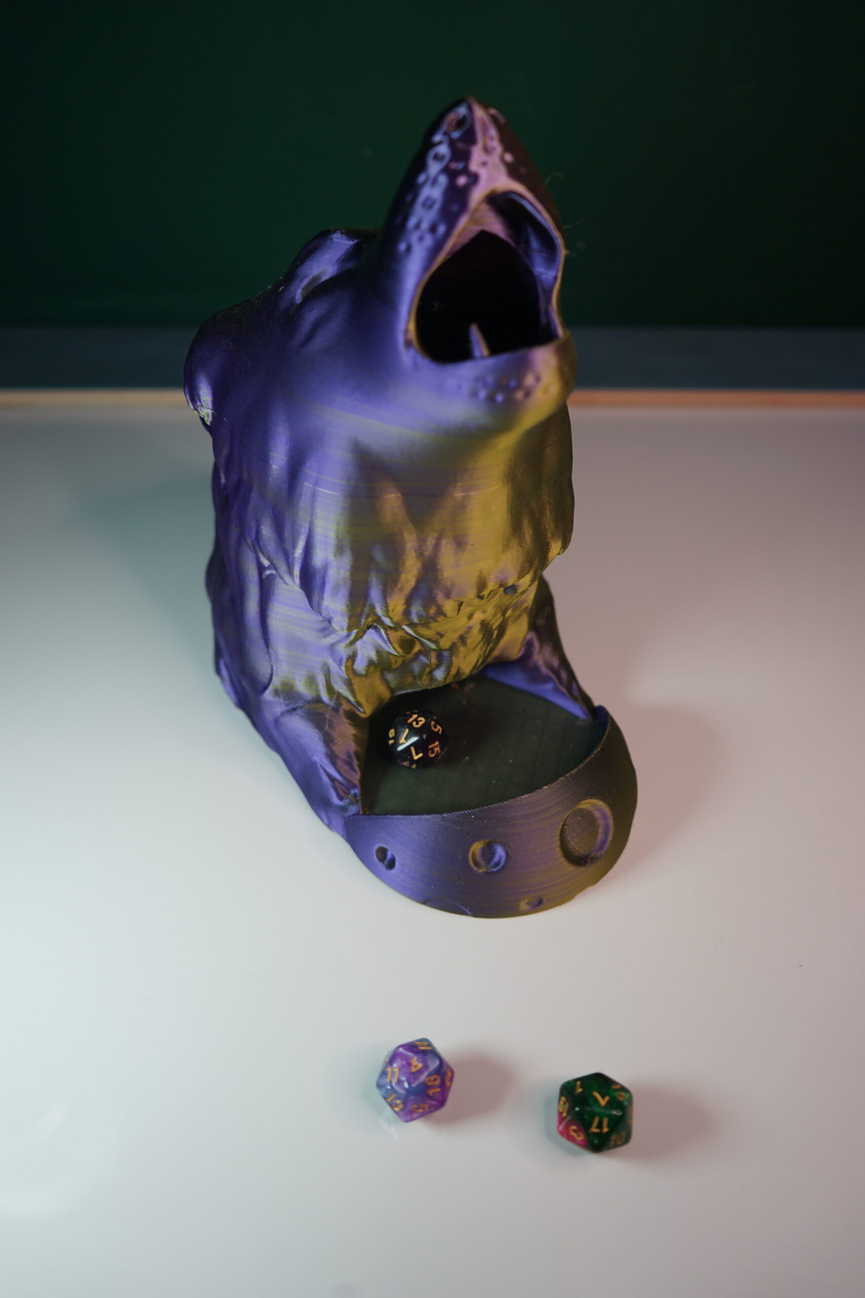 This is 3D printed, using Bambu X1 Carbon, and quality PLA. Dice Not Included.